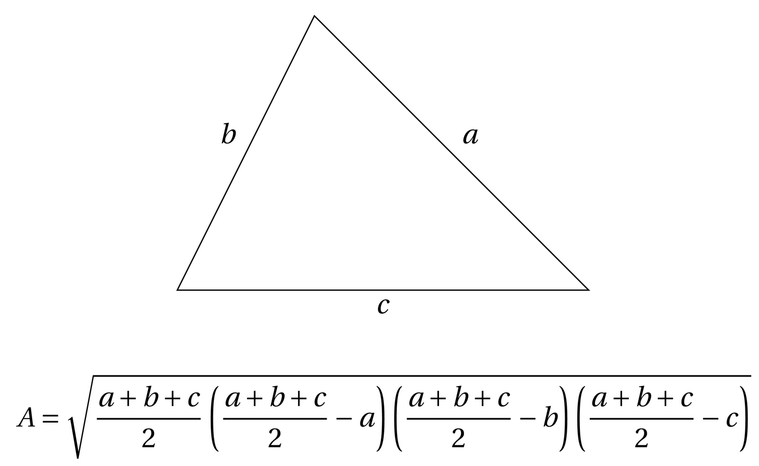 Arrow upD'après la formule de Héron, il est possible de calculer l'aire d'un triangle uniquement à partir des longueurs des trois côtés.