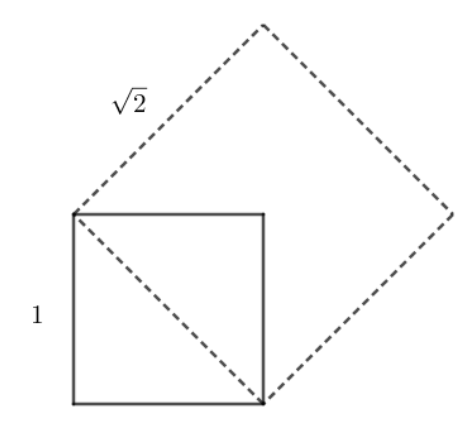 Dans Ménon, Platon met en scène Socrate faisant découvrir à un esclave la duplication du carré par la construction d'un carré sur la diagonale.