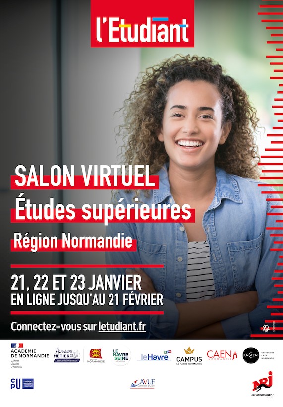 Orientation Vous êtes lycéen, élève de classe prépa, étudiant ou titulaire d’un bac + 1, + 2 ou + 3 ? Rendez-vous au Salon virtuel des études supérieures – Région Normandie :