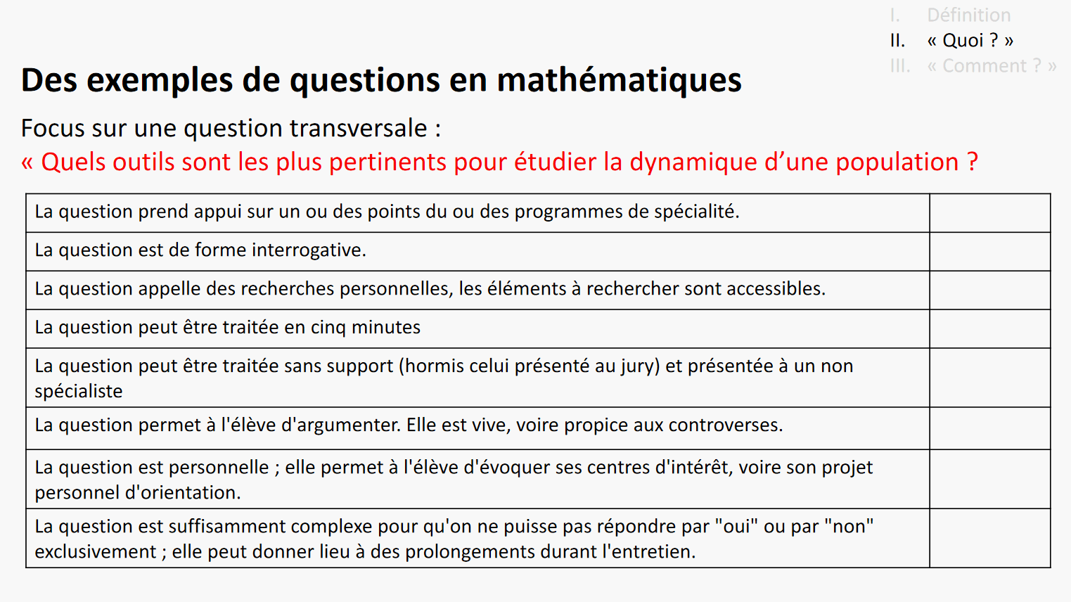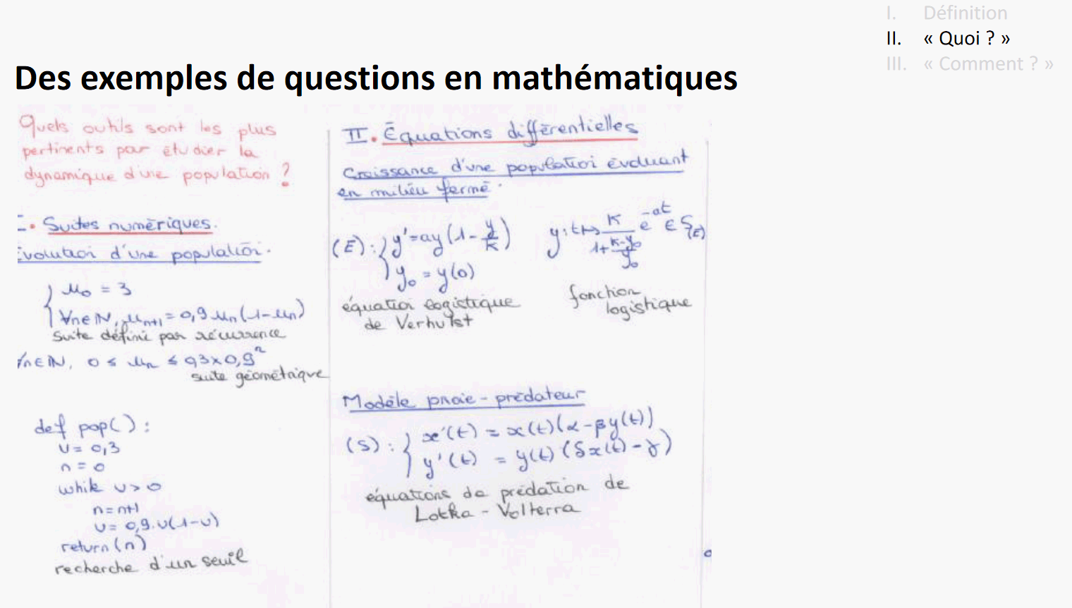 Un exemple de question (et présentation d'un support) :
